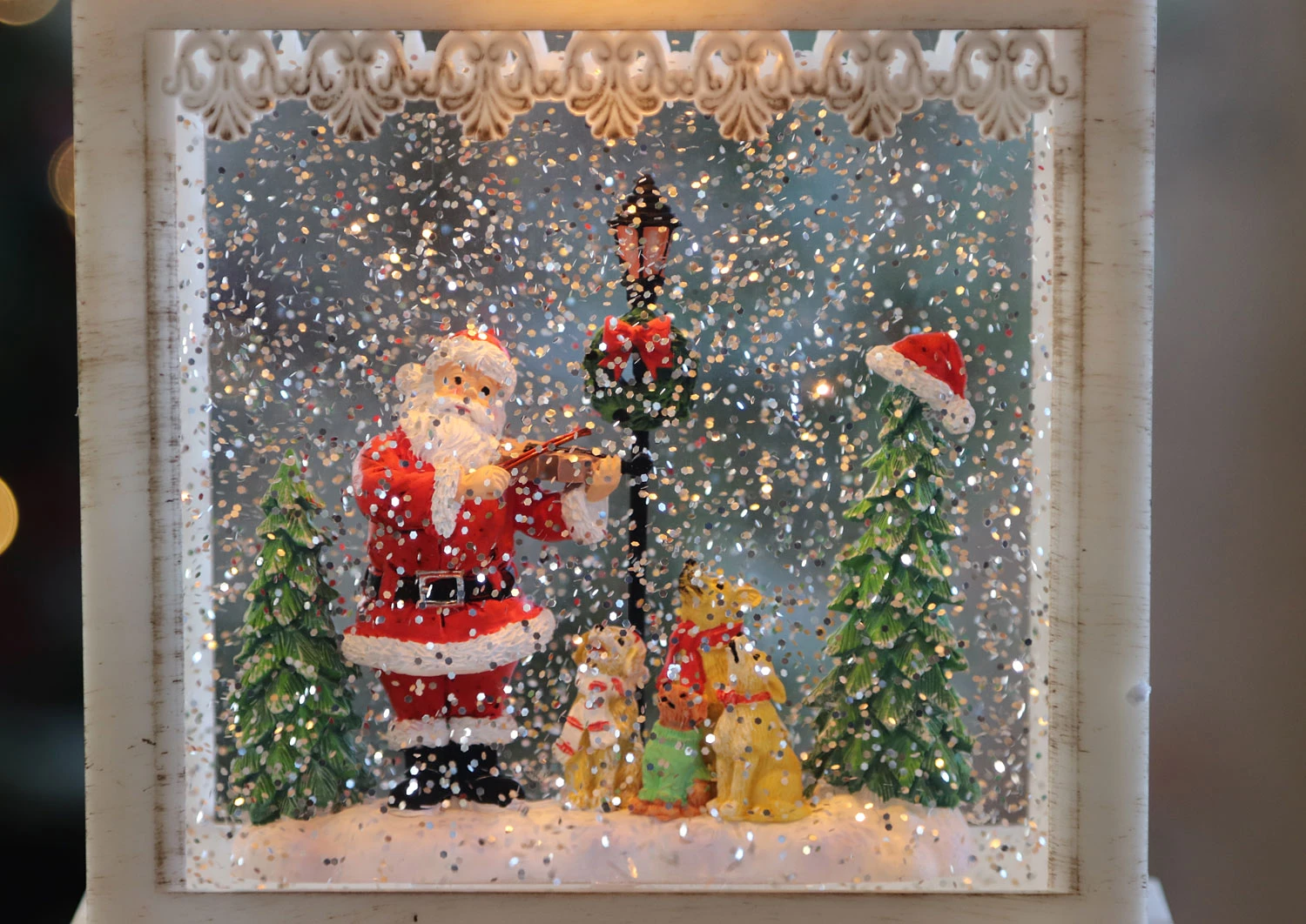 11 Inch Santa And Candy Cane Musical Lighted Water Lantern With Timer