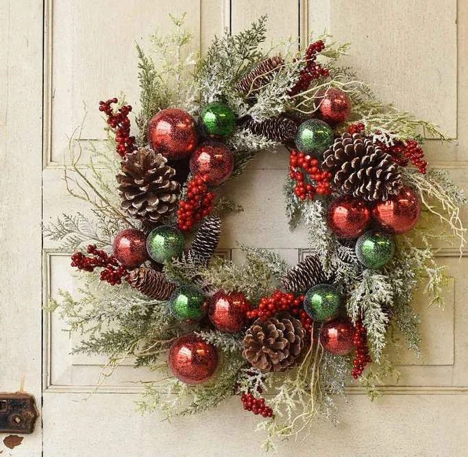 Deck the Halls Wreath with Pinecones & Christmas Balls