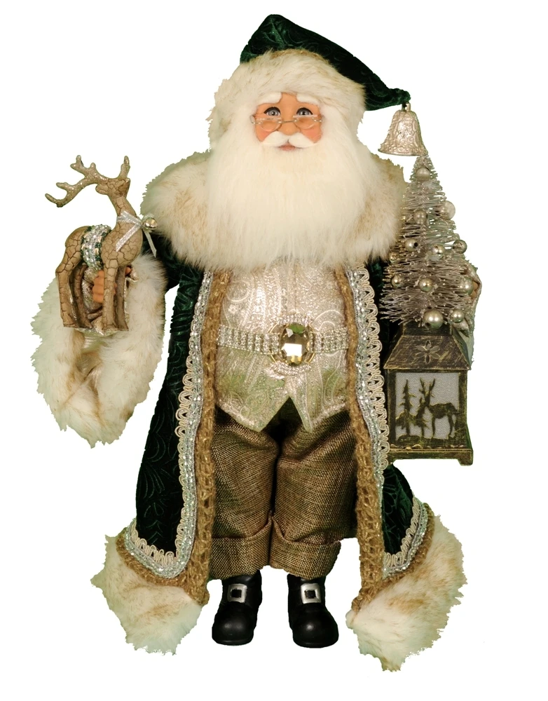 - 2018 Karen Didion Santa – Lighted Woodland Emerald – Collectible Santa Figure