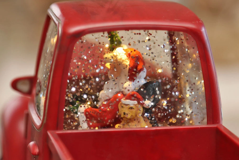 Acrylic Santa and Pup Figurine