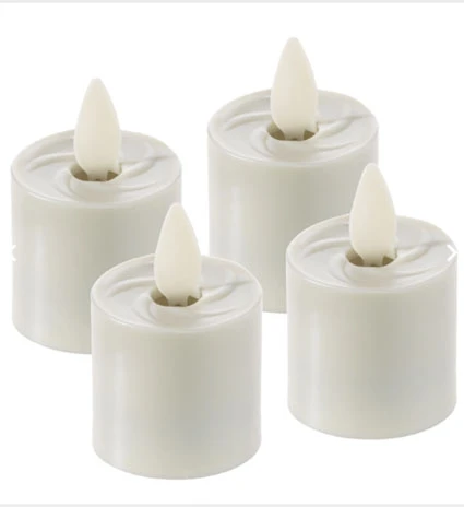 Add a delicate centerpiece to your event with a Set of 4 Ivory Flameless Candle Tealights featuring real Flame-Effect technology. The patented moving flame casts a flickering glow against the high-quality plastic. Place your candles in votives or glass jars to capture the look of traditional candles without the open flame.