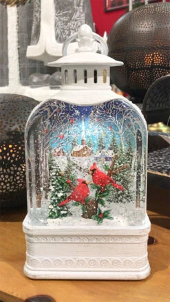 Water Lantern – Santa With Deer And Cardinals – Battery Operated – 10.75in