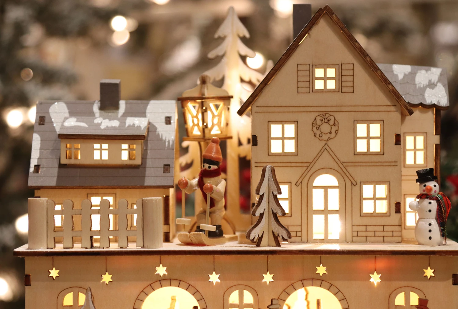 Lighted Water Greenhouse Cardinals, Red Amaryllis And Evergreens